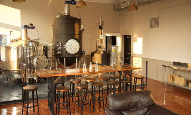 In 2015 Jones began his long quest to build a tribute to his father. His first step was to request bylaw changes to allow distilleries to operate in Revelstoke. His purchase of Mountain View School in June 2016 was followed by a period of required heritage revitalization of the historic building: first there was an eight-month wait for a building permit, then a couple of months of construction, then a six-month wait for an occupancy permit.