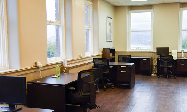 Mountain View Medical Centre occupies the lower floor of the former school. On the top level, Jones has opened Third Street Offices, a co-working space that can accommodate a couple of dozen users. The rest of that floor has an area intended for a makerspace, and office space rented by Parks Canada.